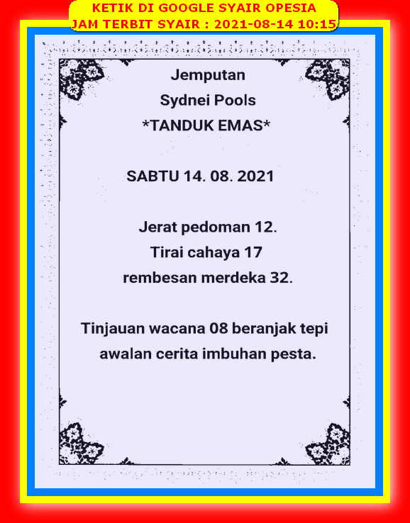 Syair Toto Sydney 1 Oktober 2021 Royal Syair From 139.99.27.27